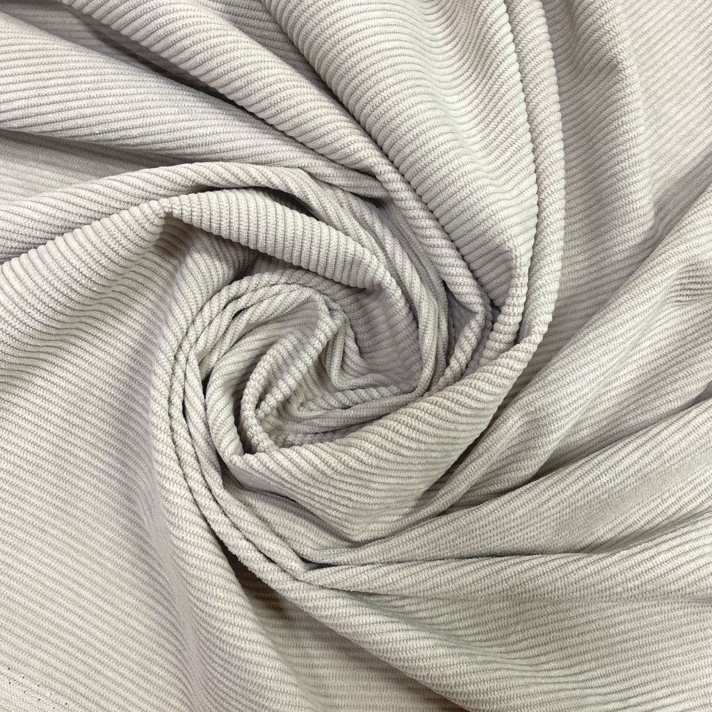 Плотный, и в то же время приятный материал с матовым блеском по лицевой стороне и нежной бархатистой поверхностью. На лицевой стороне классический ворс, создающий фактуру в полоску. Хорошая плотность ткани обеспечивает ее высокую износостойкость. Вещи из вельвета всегда актуальны, удобны в носке и не мнутся. Ткань прекрасно подходит для пошива свитшотов, платьев, юбок, а также спортивных костюмов.