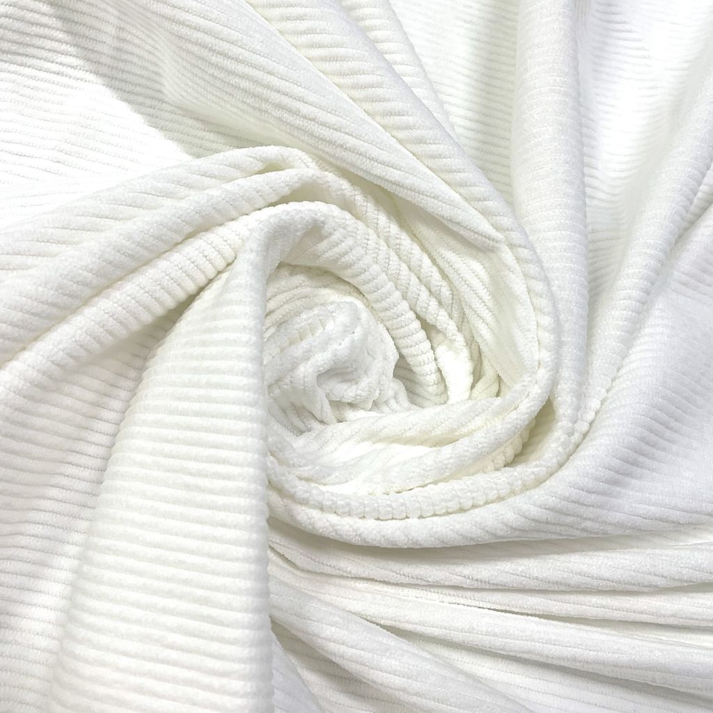 Плотный, и в то же время приятный материал с матовым блеском по лицевой стороне и нежной бархатистой поверхностью. На лицевой стороне классический ворс, создающий фактуру в полоску. Хорошая плотность ткани обеспечивает ее высокую износостойкость. Вещи из вельвета всегда актуальны, удобны в носке и не мнутся. Ткань прекрасно подходит для пошива свитшотов, платьев, юбок, а также спортивных костюмов.